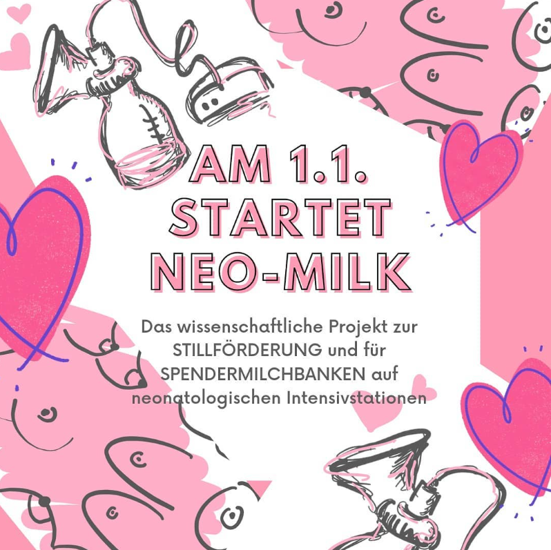 Am 1.1.2021 ist es soweit und Neo-Milk startet. NeoMilk ist ein durch den Innovationsfonds des Gemeinsamen Bundesausschuss gefördertes wissenschaftliches Projekt, um ein strukturiertes Stillförderprogramm und Spendermilchbanken auf neonatologischen Intensivstationen einzuführen. Langfristiges Ziel ist, dass jedes Frühgeborene unter 1.500 Gramm ab dem ersten Lebenstag Zugang zu Muttermilch/Spendermilch bekommt.