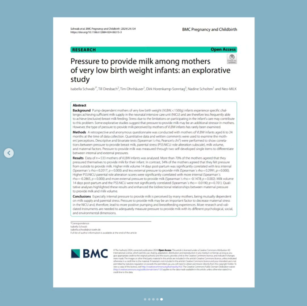 Schwab, I., Dresbach, T., Ohnhäuser, T. et al. Pressure to provide milk among mothers of very low birth weight infants: an explorative study. BMC Pregnancy Childbirth 24, 134 (2024). https://doi.org/10.1186/s12884-024-06315-3